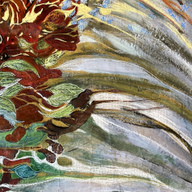 "Le désir d'écrire cette icône m'était venu lors d'un atelier de Travail qui relie en 2023 ; je n'étais pas allée plus loin que la préparation du levkas... C'est revenu au printemps qui a suivi et tout est allé très vite ! Elle a été bénie par Mgr Martin le 15 août 2024 et accompagne désormais nos ateliers d'écospitritualité."    Elisha